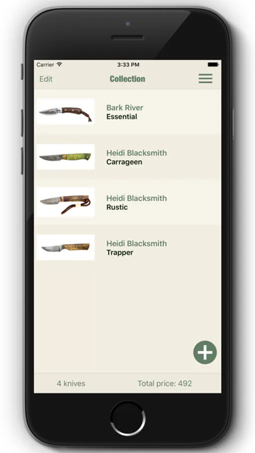 Keep track of your knife collection and its value on the go and when meeting other collectors. Well organized and always available.