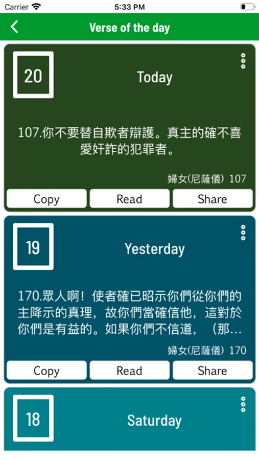 * Share verses with friends using social networks( Facebook/Twitter), email, or SMS (text).