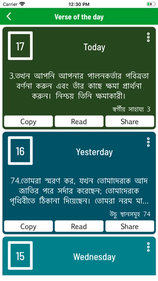 * Share verses with friends using social networks( Facebook/Twitter), email, or SMS (text).