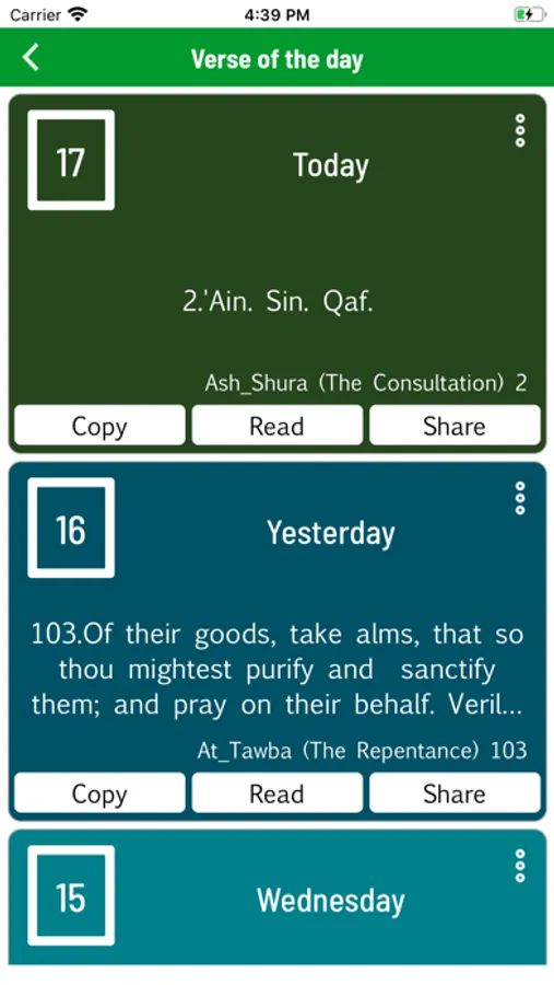 * Share verses with friends using social networks( Facebook/Twitter), email, or SMS (text).