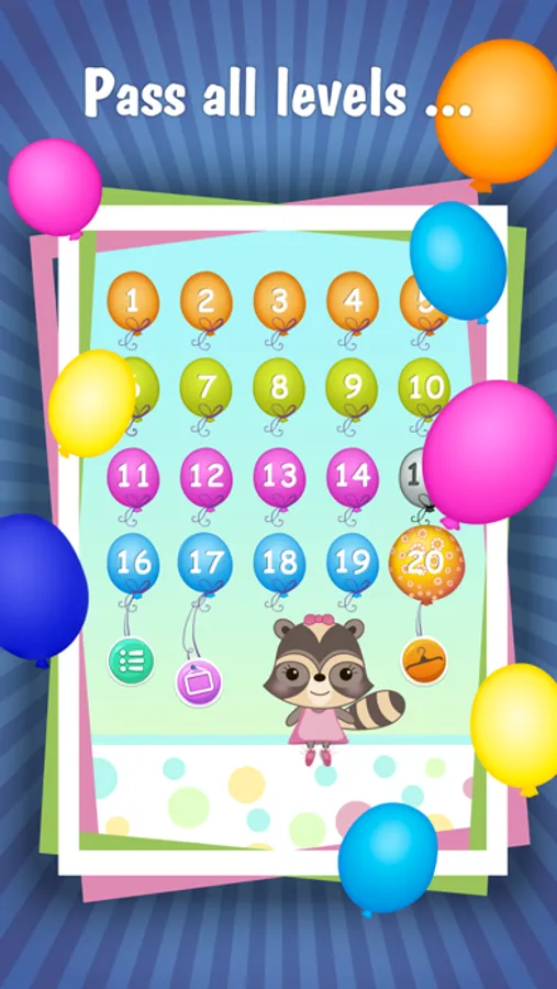 Are you looking for a fun brain game for your children? Then “Candy Raccoon: Pop Ballons” is what you need. This game for kids allows your children to have fun, develop their logical thinking, learning, perseverance, and perception – all of that while playing a game!