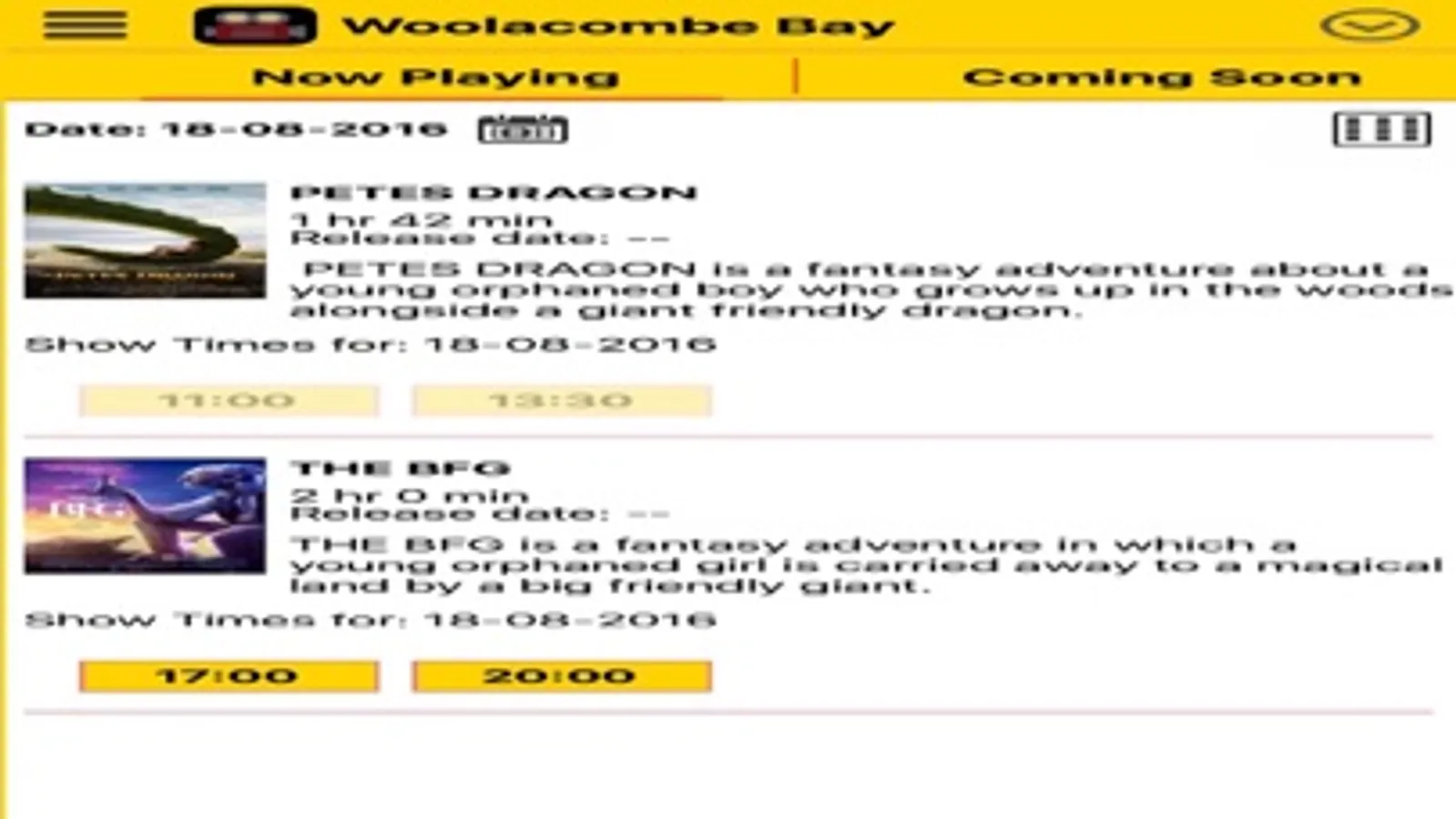 Showtimes, Movie information, Theater information, online booking app for Woolacombe Bay Cinemas. Woolacombe Bay Cinemas App provides Now Playing & Coming Soon Movie information, all the latest movie times, guarantees ticket availability, theaters' location & facilities information, Directions to theaters locations. Download the Woolacombe Bay Cinemas FREE App and enjoy.