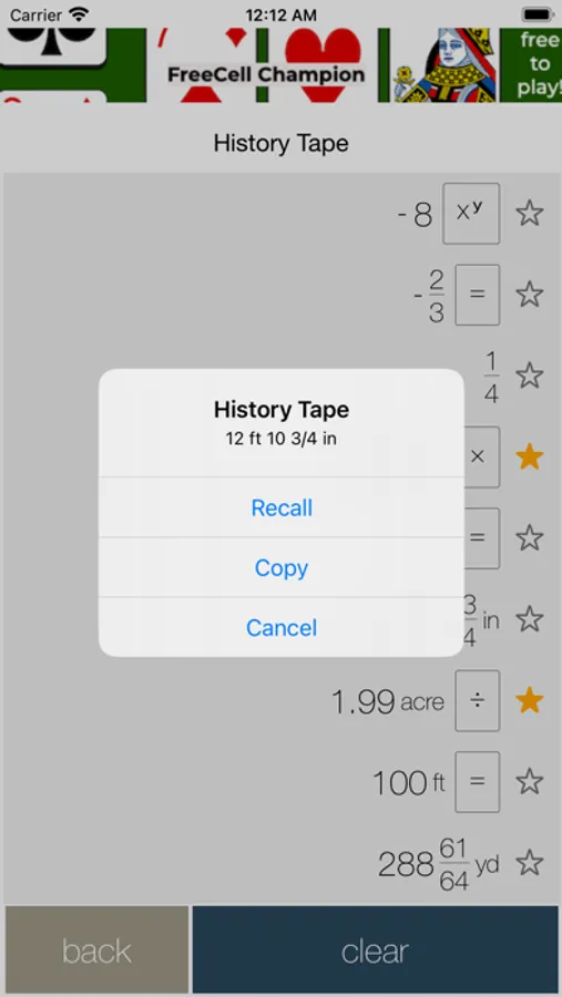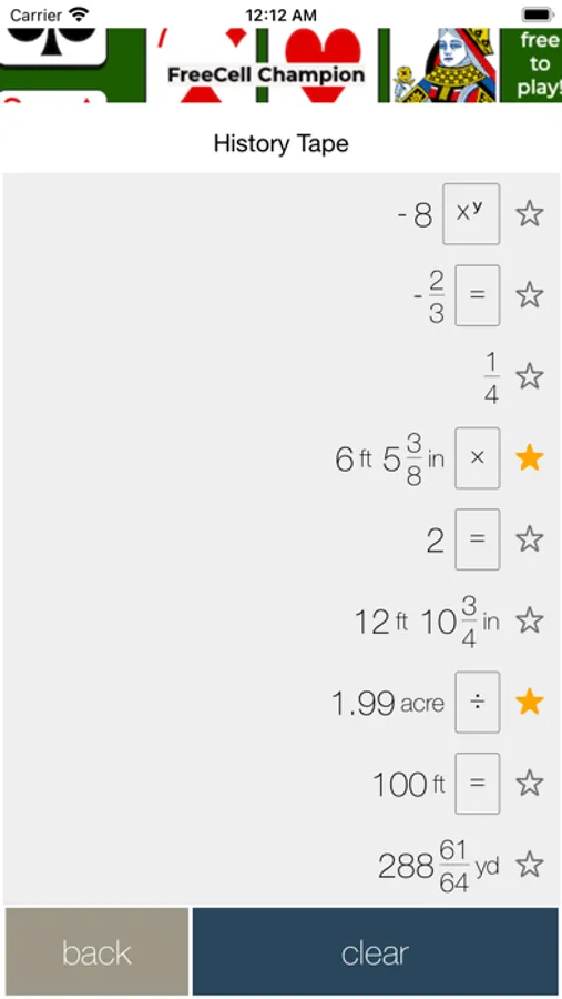 **8. History Tape with Easy Recall:** Never lose track of your calculations again. The app's History Tape saves your past calculations for easy recall. Quickly refer back to previous results, analyze your calculations, and make adjustments when needed. The starred memory function allows you to save important calculations for future reference.