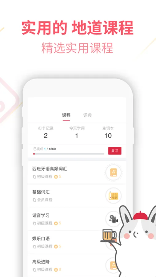 西班牙语U学院,一款由简言科技打造的西班牙语入门学习工具,让你轻松开口说地道的西班牙语!