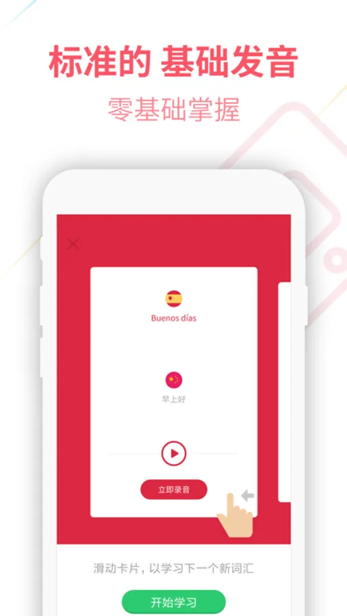 全球数百万西班牙语学习者随身工具,涵盖西班牙语字母表标准发音,精选西班牙语必学50词,看电影学西班牙语,各类场景西班牙语教程。所有资料具有西班牙语翻译,让其快速入门西班牙语(spanish)。一款好用的西班牙语入门学习工具,适合零基础西语初学者,在这里轻松学习西班牙语!