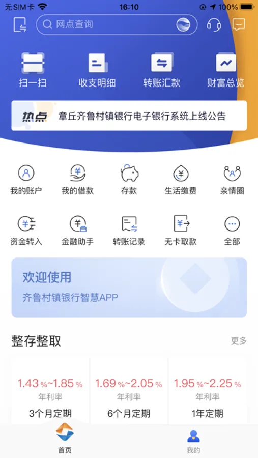 手机银行6.0全新升级,满足客户随时随地的线上金融诉求,新版本全面升级用户体系,为客户提供安全便捷的自助注册、财富总览、智能语音、亲情账户等特色功能。