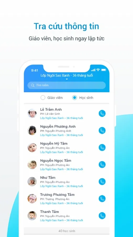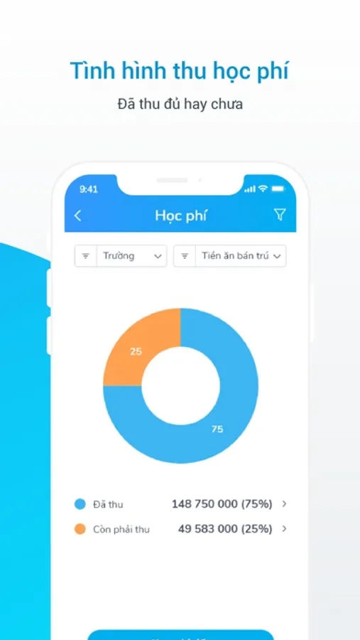 Đối với cấp Tiểu học và THCS, Hiệu trưởng nhà trường có thể dễ dàng theo dõi lịch báo giảng, thống kê tình hình học tập, rèn luyện của học sinh bằng các bảng báo cáo thông minh.