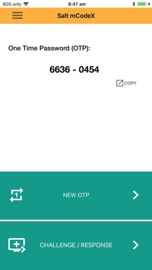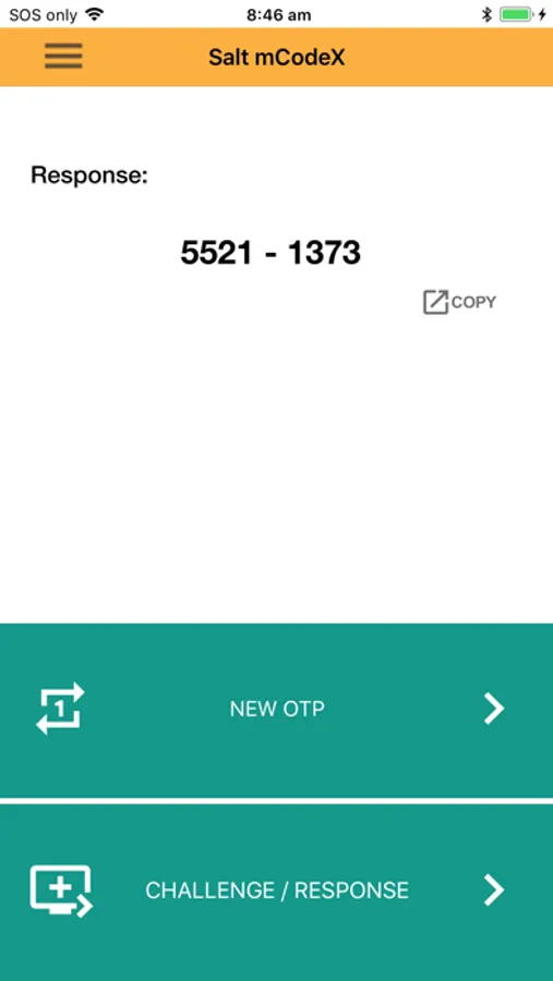 Salt mCodeX uses biometric(fingerprint and face-id) authentication to generate One Time Passwords (OTP) and Challenge/Response signature codes that are displayed on the iOS device.