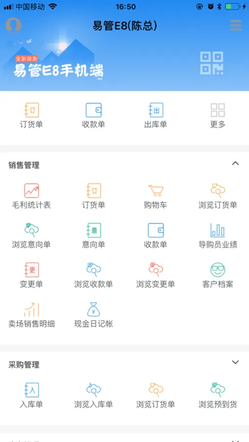 易管E8家具软件手机版是《易管E8家具销售管理软件》的移动客户端,它将软件中常用的功能移植到手机上,可以实现在手机上开单,打印,查库存,看报表,管理后台服务器等,导购员可以用它开单,仓管员可以用它盘点,出库,经理出差在外也可随时看报表,使用户摆脱了电脑的束缚,极大地提高了工作效率。(需要试用帐号请直接联系我们)