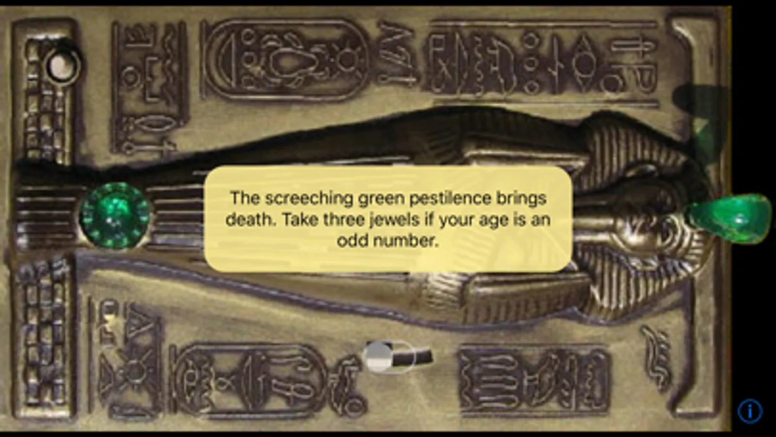 Flip the switch on the sarcophagus to play a random message. Tap the "i" icon in the lower-right, or press-and-hold to bring up a menu to flip the record for the second part of the game play. Hearing-impaired folks can even play the game now by turning on closed-captioning - read the instructions on the screen as the mummy says them!