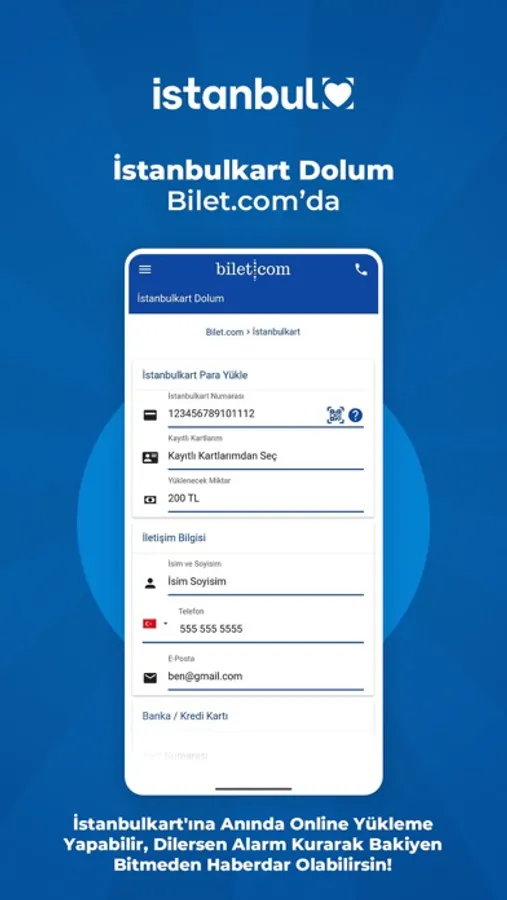 İstanbulkart'ınıza uygulamamız üzerinden para yükleyebilir, kartınızın son bakiyesini öğrenebilirsiniz. Üstelik kartınızı hesabınıza kaydedip bakiyeniz belirttiğiniz tutarın altına düştüğünde bildirim almak için alarm kurarak "Yetersiz Bakiye" sesini hayatınızdan çıkarabilirsiniz!