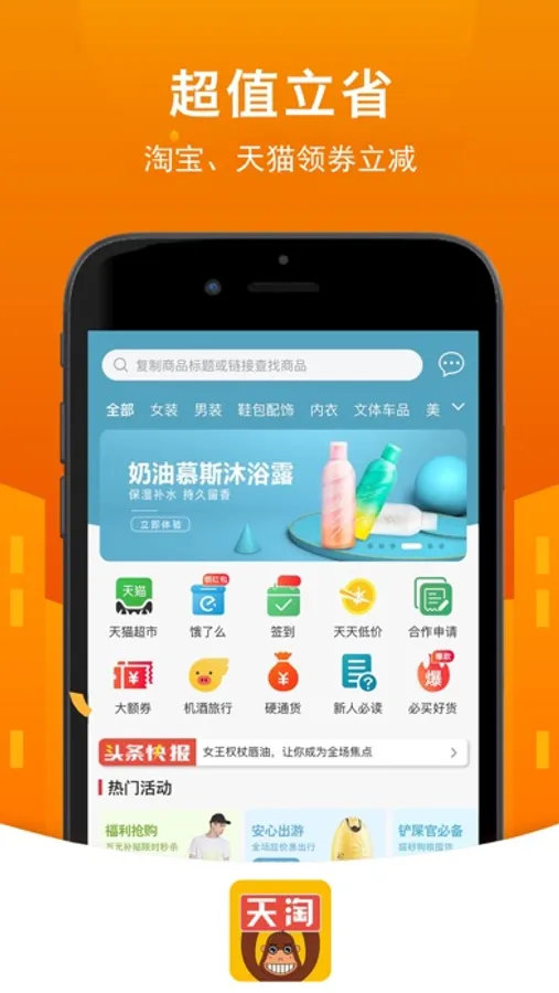 【天淘麦坝】,一款专为网购人群打造的导购APP,APP内商品种类齐全,更有海量低价优惠商品供您选择,APP内提供有各种抵扣优惠券,隐藏优惠券,大额优惠券,先领券,后购物,买什么都能为您省一笔,最高甚至可节省达90%;新人注册即送50元无门槛基金,赶紧下载购物吧!