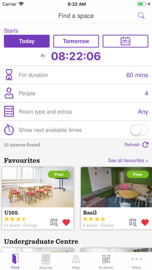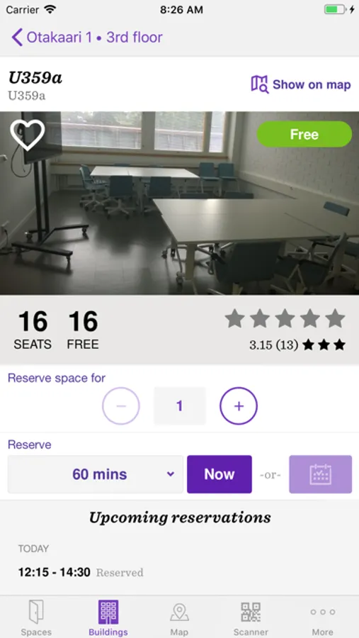 - Instant study and group work space reservation for students