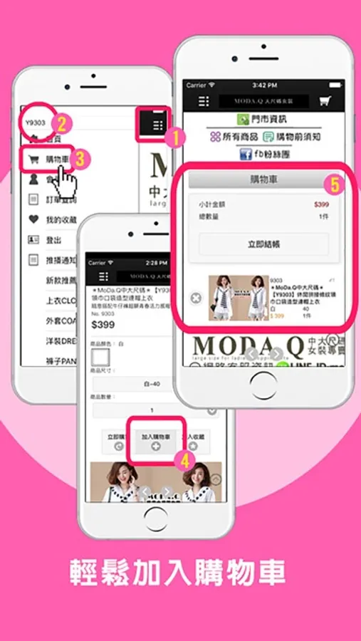 MODA.Q大尺碼女裝行動購物APP,以薄利多銷的方式提供60~150公斤的妳最方便又能快速收貨的購物平台,上班日天天快速對帳出貨,讓妳24小時輕鬆購物沒煩惱又能穿的漂亮穿出自信出門去喔!