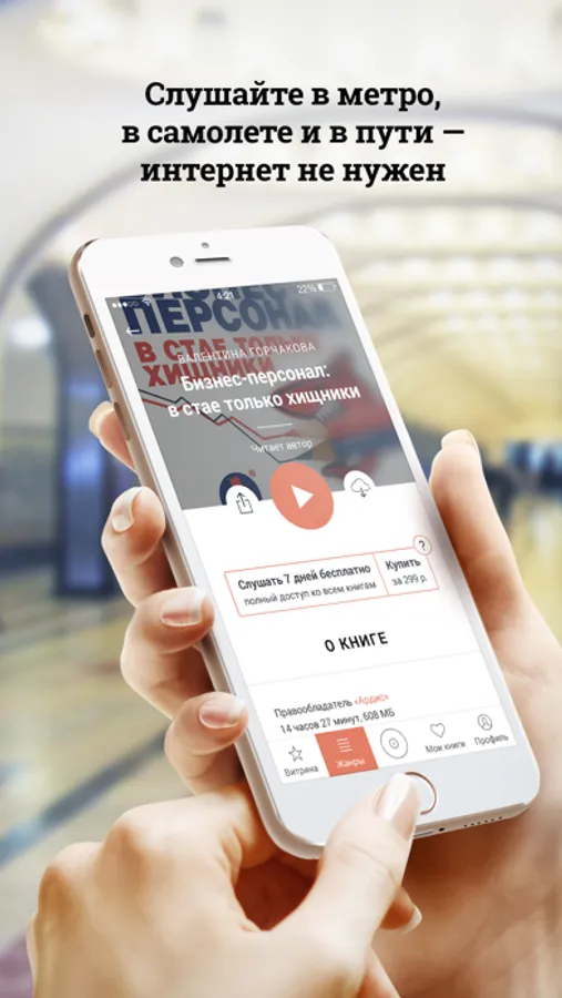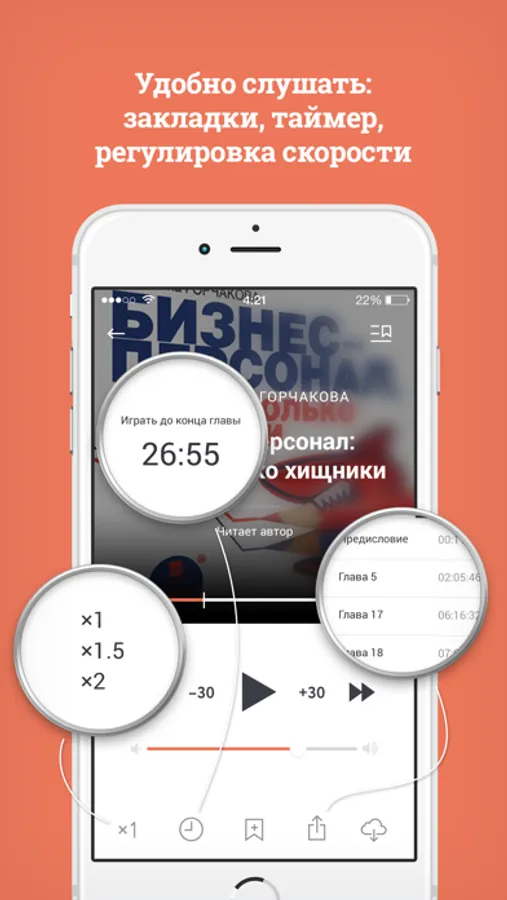 Вы без труда найдёте желаемое в обширном и удобно структурированном каталоге, откроете для себя новые горизонты, изучая любовно собранные нами тематические коллекции, узнаете, что слушают другие, и что рекомендуем послушать мы. Выбирайте осознанно: в каждой аудиокниге предусмотрен фрагмент для предварительного прослушивания. Вы оцените быструю загрузку, разбивку на главы и прочие незаметные, но очень приятные мелочи.