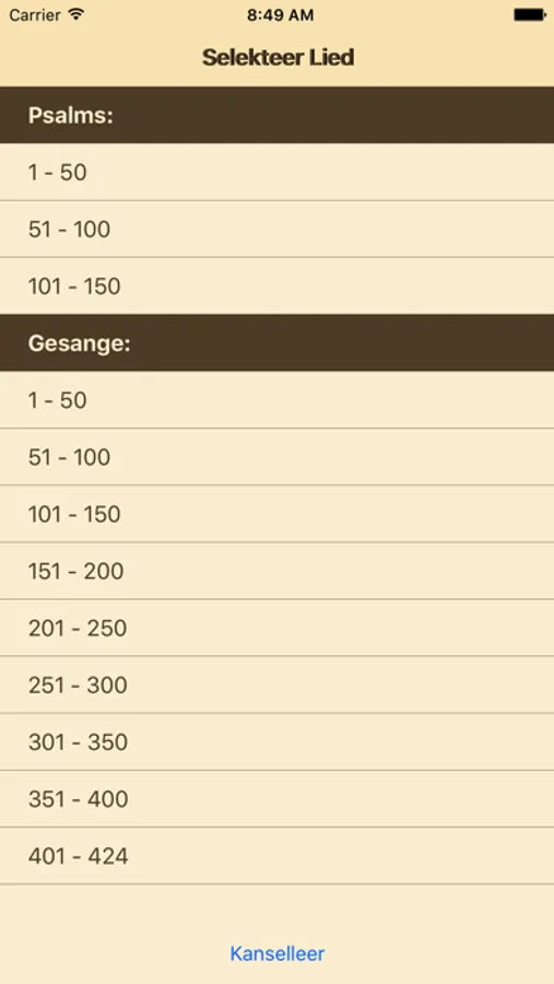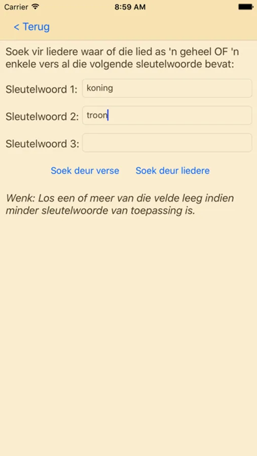 • Gevorderde soekfunksie met tot drie soekterme vir psalms en gesange
