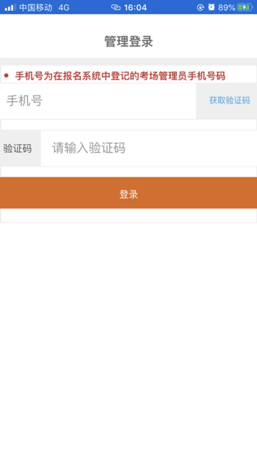 (1) 验证登录,具有资格的考点用户可以输入手机号取得得验证码登录。