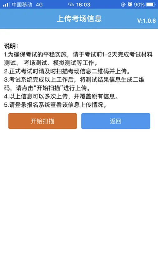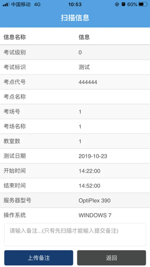 (2) 扫描系统生成的服务器或考场二维码信息。