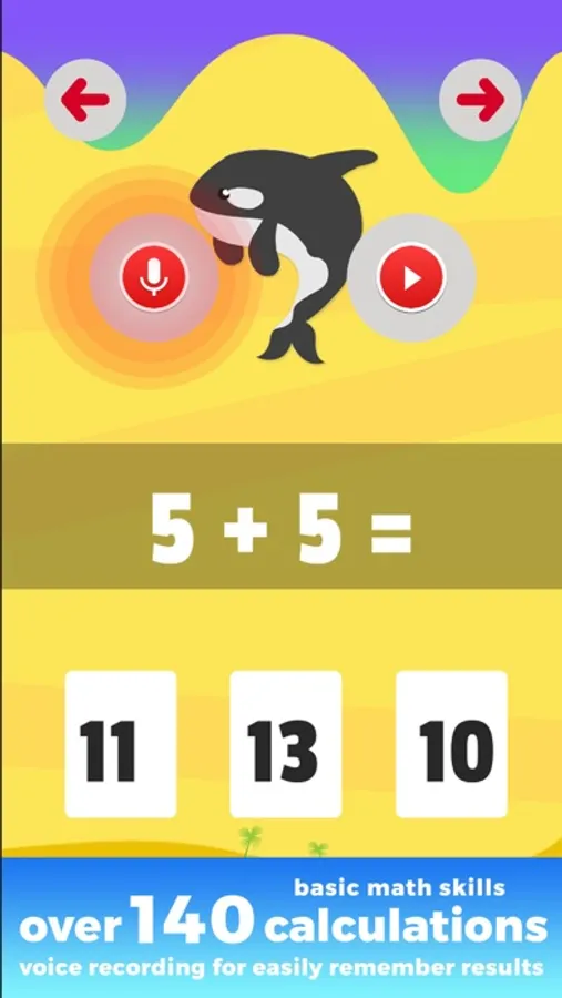 As a math app – Kids Sea Life Creator - early math calculations using voice recording and make funny images - is introducing your child inside the number’s world where little cute sea animals displays arithmetic quizzes with multiple-choice answers for your child to select. You can join in by recording the correct answer or encourage your child to do it and save it for later.