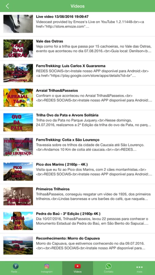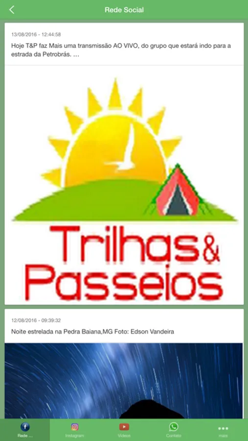 Aplicativo com todas as redes socias do grupo Trilhas&Passeios.
