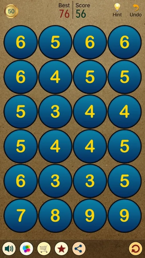 Merge same-number neighbors to lower the number, until you end up with a single 0. Starts easy and gets progressively harder as you go. A great puzzle for casual players.