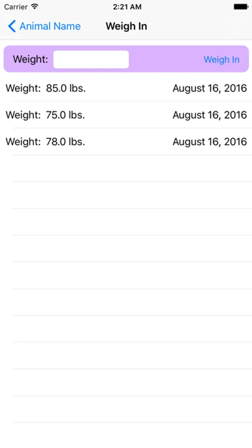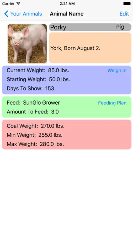 This app was designed for the 4-H/FFA style livestock shows in mind. Great for lambs, pigs or swine, cows and cattle, chicken turkeys and other poultry, and rabbits. Great show tracker. Have your animal gain weight with this show tracker.