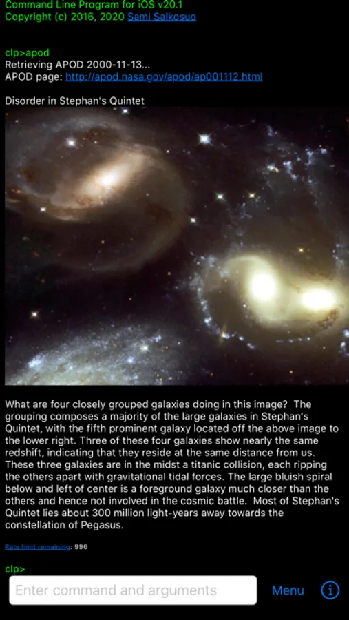 - What was the Astronomy Picture of the Day of Christmas Eve 2012: use "apod" command.