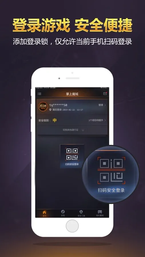 登录游戏轻松便捷,添加登录锁,仅允许当前手机扫码登录。