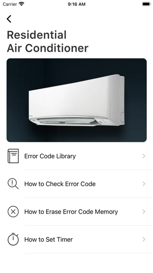 Once downloaded Panasonic AC Service Guide App allows you to: