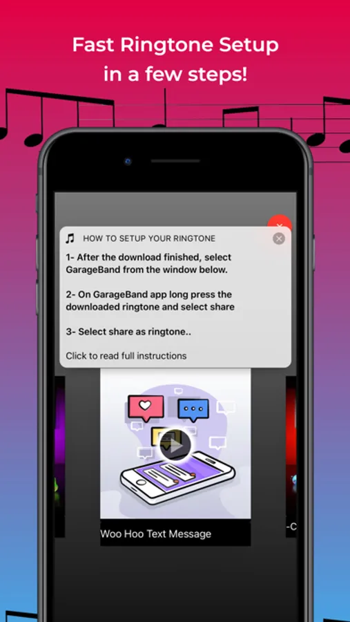 We have made the iPhone ringtone setup process much more easier, just download the ringtone, open it up with GarageBand app and it will be setup as ringtone in a few steps.