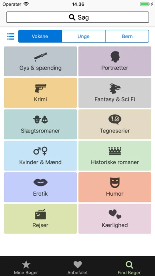The app only contains audiobooks at the moment. To access e-books, you still need to use the nota.dk