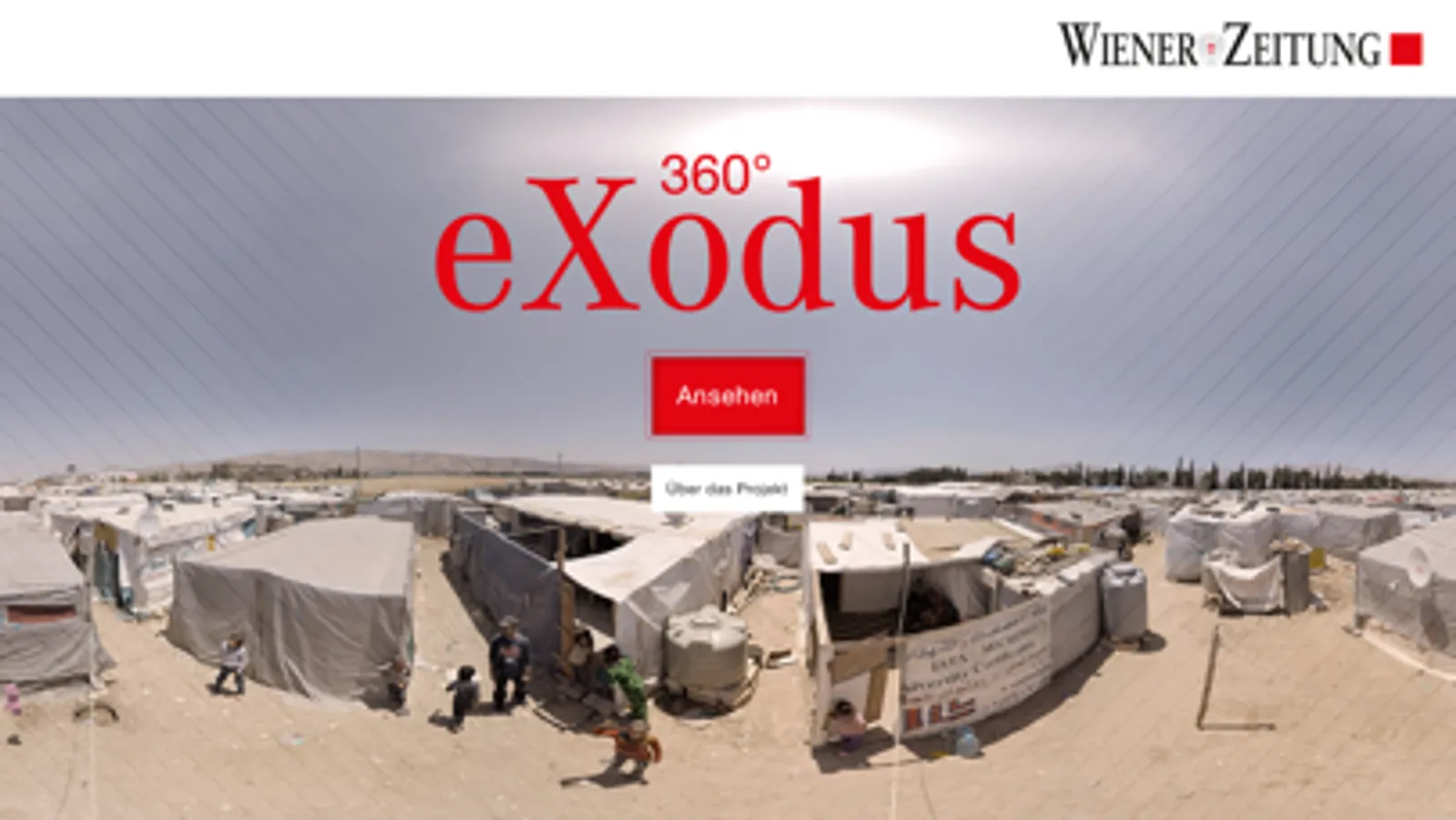 Mit der WZ Virtual-Reality-App der „Wiener Zeitung“ können Sie den 360°-Dokumentarfilm „360° - eXodus“ bequem ansehen. 360° - eXodus bringt Sie in das Flüchtlingslager Moussa Taleb an der syrisch-libanesischen Grenze. Dort treffen Sie Aishe und Abdallah, zwei Kinder, die vor dem Krieg geflohen sind und Sie treffen Adib, der aus dem Chaos des Krieges in Syrien nach Wien geflohen ist. In Virtual Reality erleben Sie den Alltag im Lager hautnah und können sich ein 360-Grad-Bild machen, bei dem Sie selbst den Blickwinkel bestimmen.