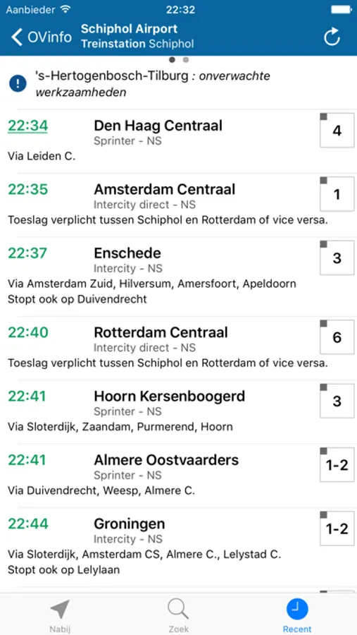 OVinfo gives you current travel information for the entire public transport system in the Netherlands. The app shows how long you have to wait before you can board, indicates where the current position of the vehicle and uses reliable information about the accessibility at stations and stops.