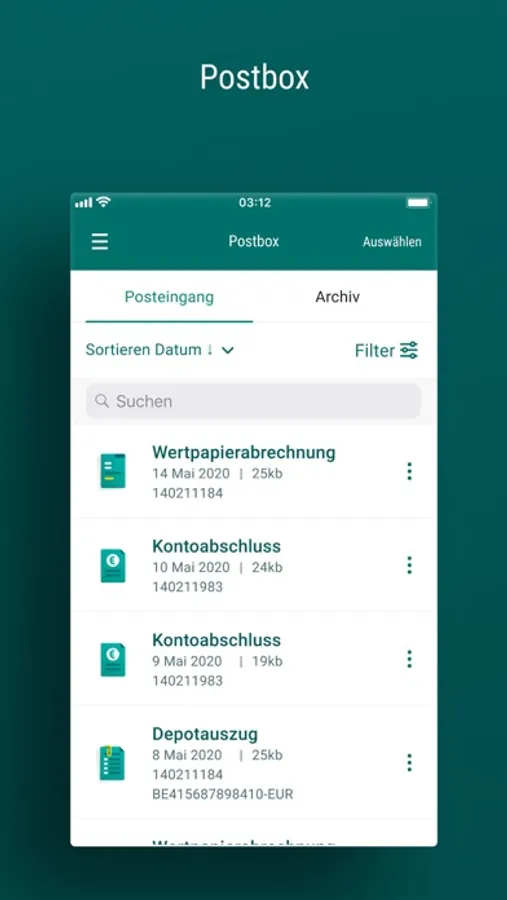• Postbox: Kontoauszüge, Portfolio-Reportings, Wertpapierberichte und andere Dokumente die Sie sonst per Post erhalten hätten, umweltschonend und von überall verfügbar.