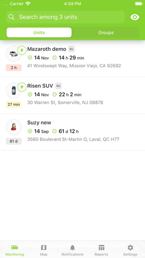 Push-notifications will bring you the latest information over the unit's violations and geofence trespassing, whereas commands will provide you better tools to manage your most valuable assets.