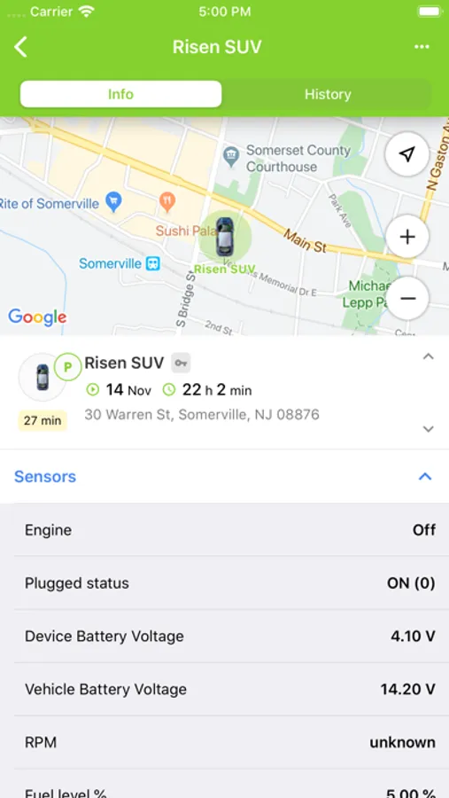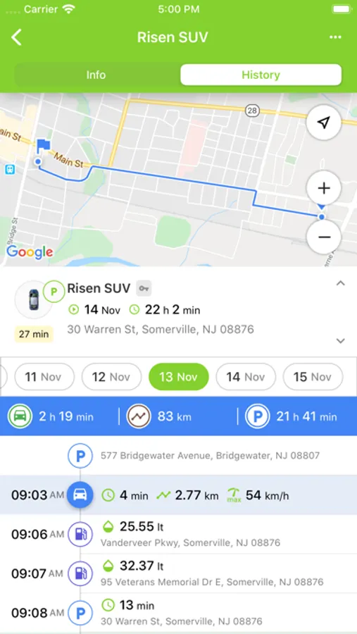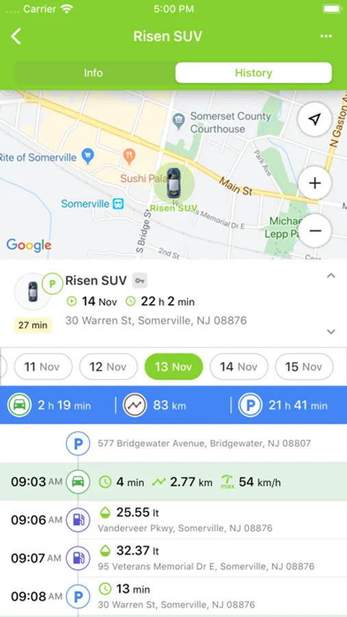 The new "events" catalogue will give you a brief overview of all trips and stops with detailed track history available on each.