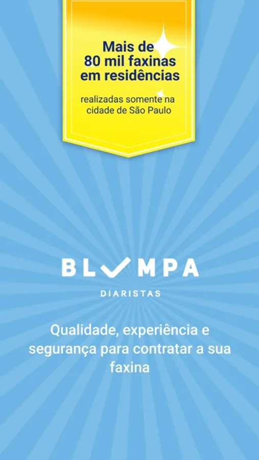 Com o Blumpa, encontrar prestadoras de serviço como diarista em SP para passar roupa, faxineira para a limpeza semanal ou faxina completa de casa ou escritório é fácil! Contrate serviços de limpeza doméstica ou sala comercial e passadeira com segurança e rapidez. O melhor aplicativo de limpeza profissional!
