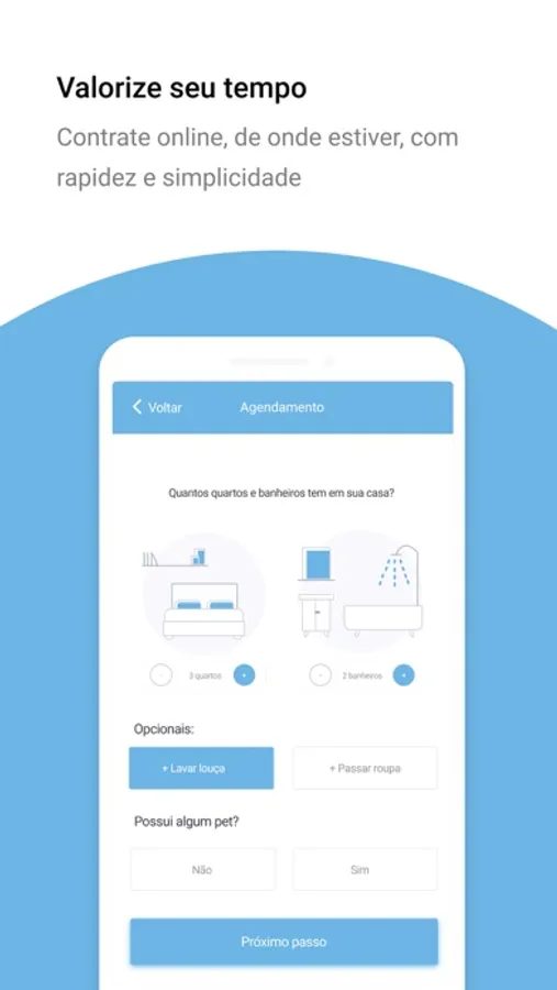 ► Contrate por hora, escolha entre as opções de serviços de limpeza (passadeira, por ex);