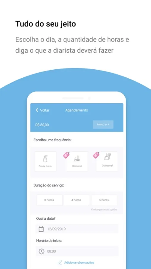 ► Defina o dia e horário do serviço;