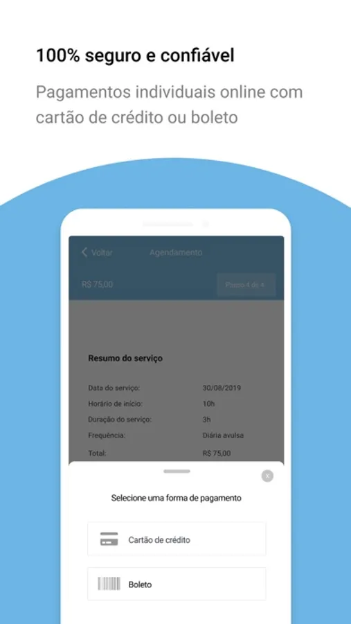 ► Pague serviço de diaristas por cartão, PayPal ou boleto bancário;