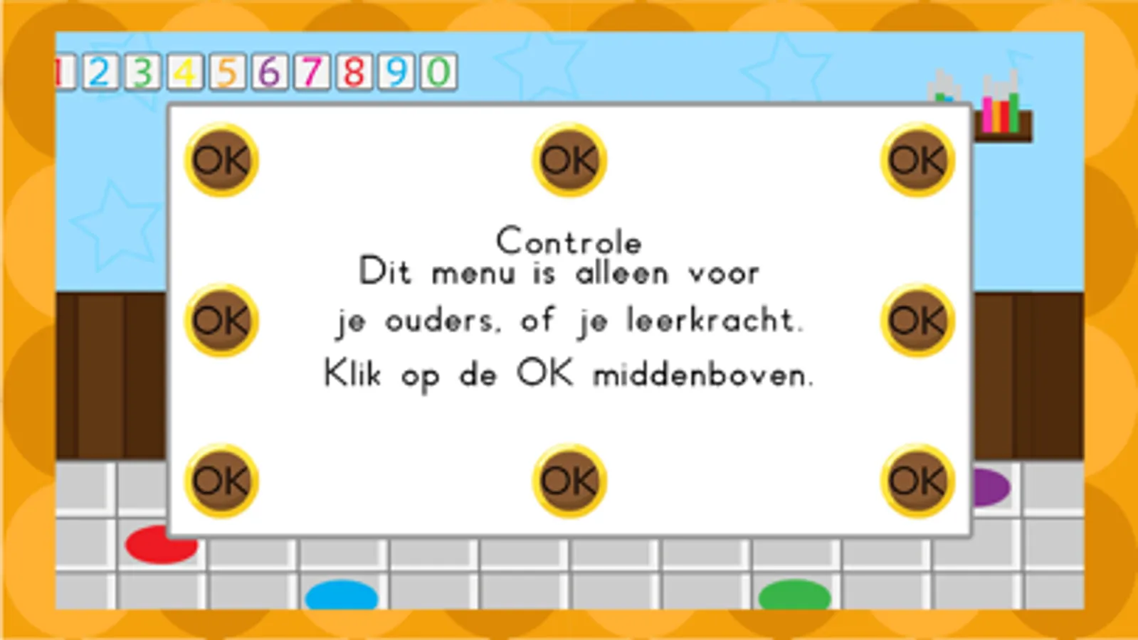 The settings are locked by a simple assignment such that the children don’t accidently change the settings. In the settings the teacher or parent can change various settings, like the number of assignments to practice, toggle the background music, etc.