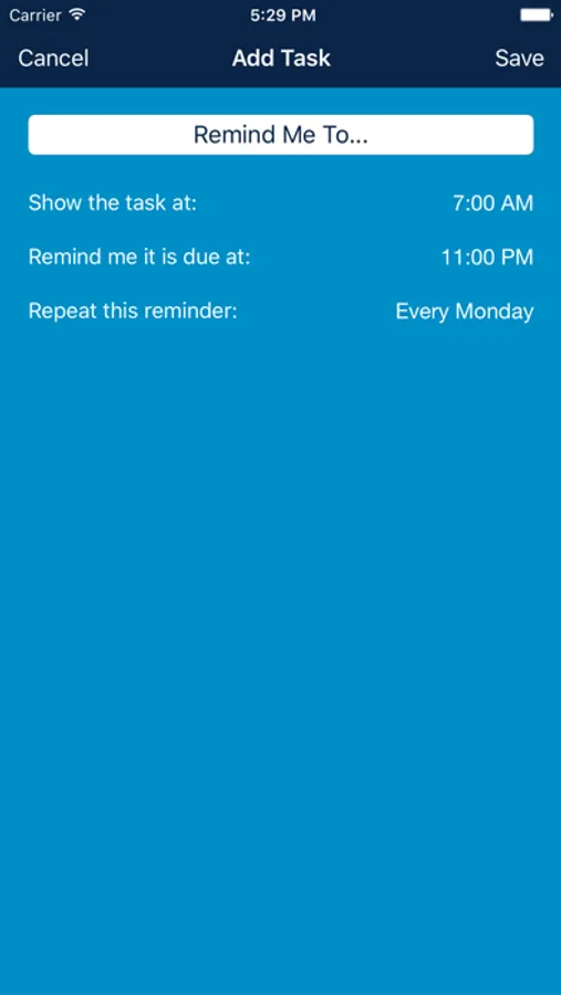 - Simple interface for adding tasks with "reminder time" and "due time"