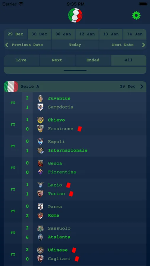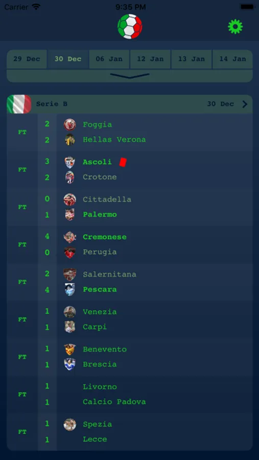 Follow live scores of the Italian Serie A and Serie B with the best app of ever, matches live, events, comments (in English), lineup, statistics and much more.