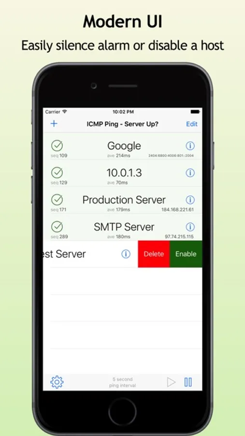 • A slick UI - swipe to enable/disable, re-ordering of hosts, tapping a host shows/hides extended info, etc