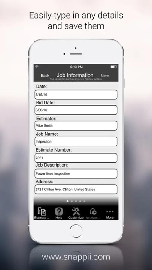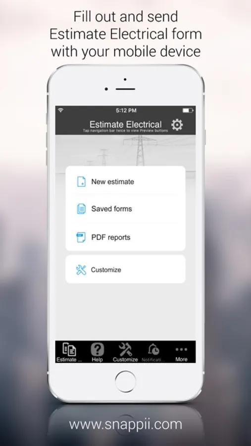 The Estimate Electical mobile app is designed to provide detailed information about electrical work estimates completed by customers, contractors and service organizations. It keeps track of basic data, specific details of the job and its progress statuses from creating estimates to completion reports. Utilize the app to win more proposals from the clients, improve customer satisfaction, avoid penalties, save time and money.