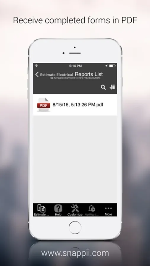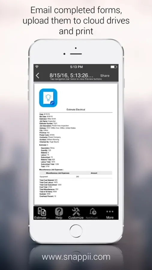 • Retrieve PDF forms of the estimates, orders and reports and share them via email, Facebook, network drives and other sharing options available on device