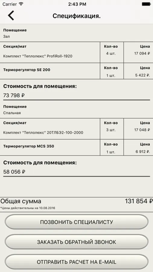 Приложения для предварительного расчета спецификации и стоимости электрического иили водяного теплого пола, производства ГК ССТ (Теплолюкс, Национальный комфорт, Neptun IWS).
