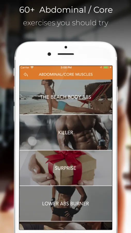- Abdominal / Core workouts: “I want to see my abs”, “Beach Body Abs” “Surprise” “Oblique Roaster” “Killer”, “Core Strength” and much more..