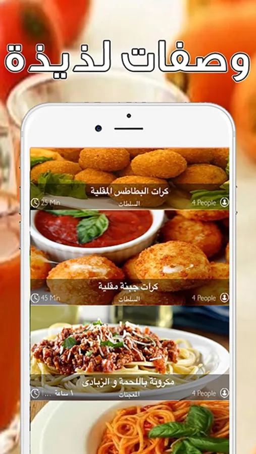 - التطبيق يتميز بقائمة تضم تصنيف الوصفات :
