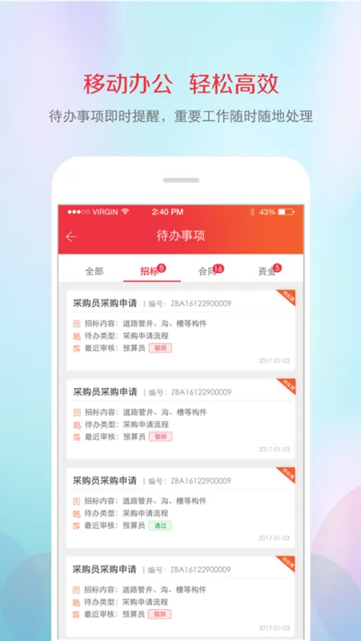 1.待办提醒:重要流程节点推送待办事项,帮企业提高业务效率
